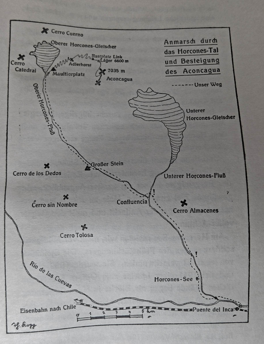 Durante el estudio de la historia del montañismo para mi libro sobre el Aconcagua [Nota: 50 Jahre Kampf um den Aconcagua (1897-1947) de Kopp, Thomas. Editorial El Buen Libro, Buenos Aires.(“50 Años de lucha en el Aconcagua)me encontré en repetidas ocasiones con el relato de cómo los miembros del Deutscher Turnverein Santiago (Club Gimnástico Alemán de Santiago) se prepararon por años para derrotar al rey de los Andes. Otros llegaron antes que ellos.