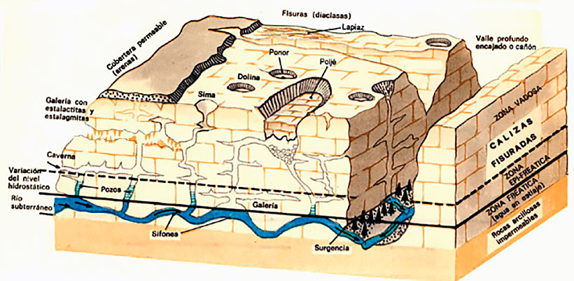 El agua es uno de los principales agentes erosivos y cuando incide sobre rocas solubles modela un paisaje muy especial. Al conjunto de formas originales del relieve que se producen en localidades compuestas de roca fácilmente solubles (yeso, calizas, dolomías o sal) se le llama karst. El nombre se debe a que los primeros estudios de este proceso se hicieron en la región de Karst, al Norte de Eslovenia. “Karsismo” es, entonces, el fenómeno de ocurrencia de cavidades naturales en una zona y “Karstología” es la rama de la Geología y de la Geomorfología que estudia este tipo de formaciones y su dinámica hidrológica. La versión latinizada de estos vocablos son “carso”, “carsismo”, “carsología”.
