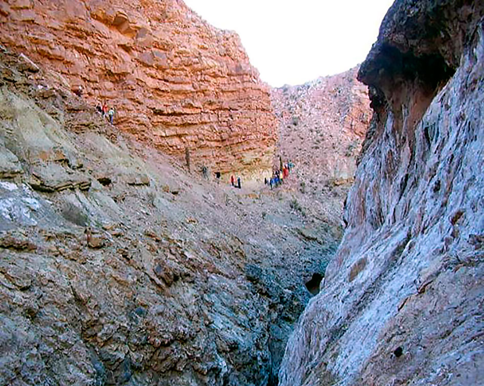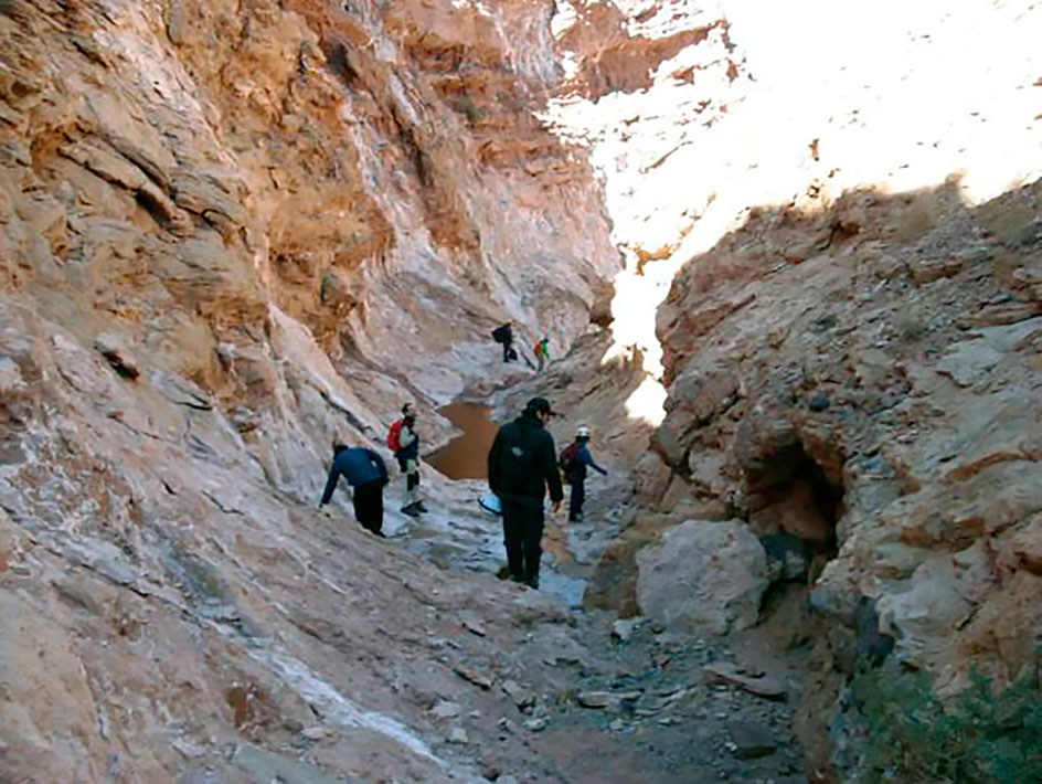 Luego de varios preparativos, sin saber con que nos encontraríamos y sin poder armar algo de muchas personas decidimos viajar 4 espeleólogos: Enrique Lipps (Biólogo) Rolando Vergara, Sergio Silva y Luis Carabelli. Viajamos en avión y en la ciudad de Salta nos estaba esperando el Intendente González y nuestro querido Amigo y ya fallecido Hernán Uriburu, a quien le debemos un gran parte de este descubrimiento, un auto estaba allí para trasladarnos al pueblo de La Poma donde nos alojamos en la hostería del pueblo, construida por González en su gestión y sitio espectacular para descansar y al día siguiente un baquiano nos acerca hasta el acantilado donde se observaba el hueco por donde ingresaba el río Calchaqui proveniente del Nevado del Acay (5.716 mts.).