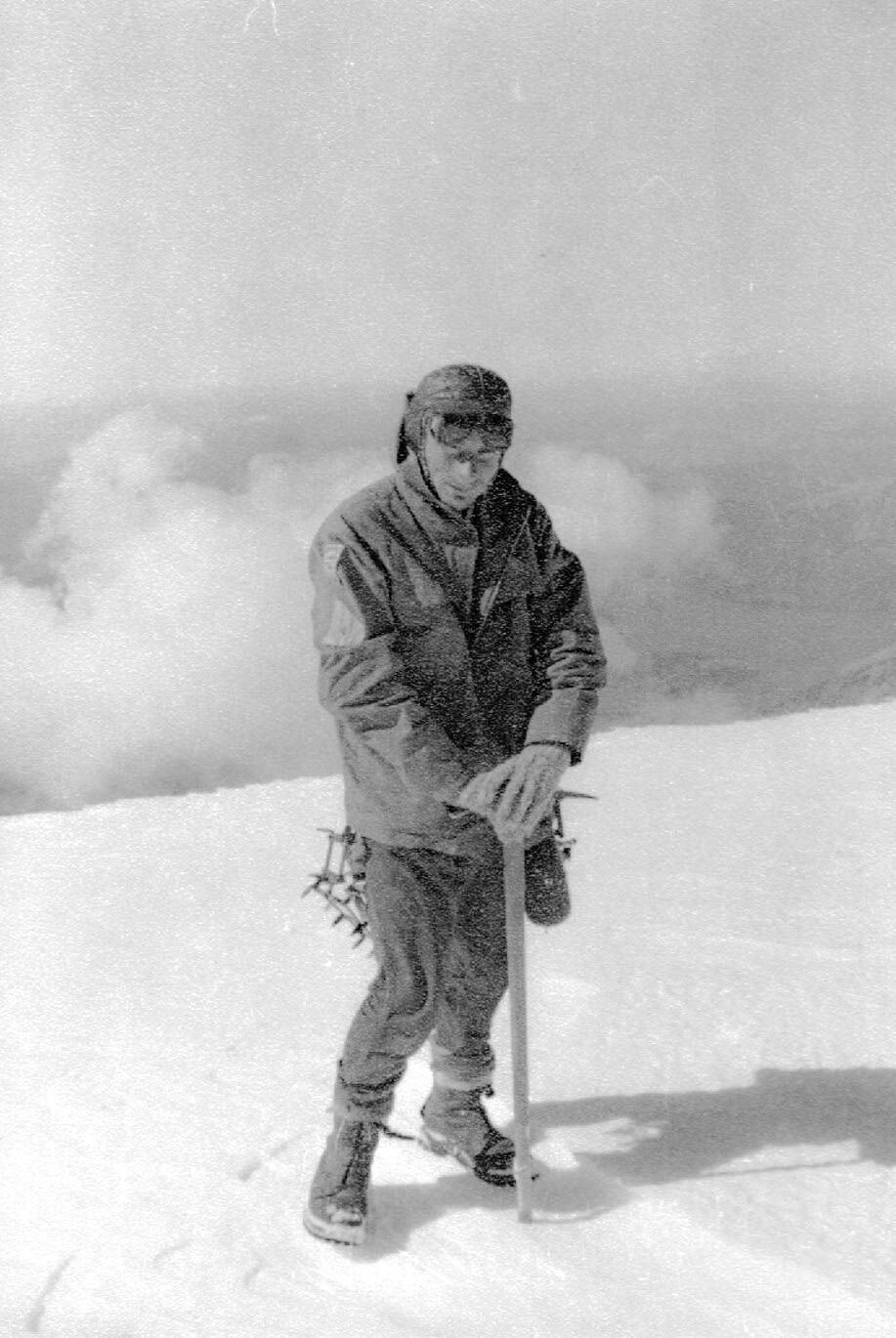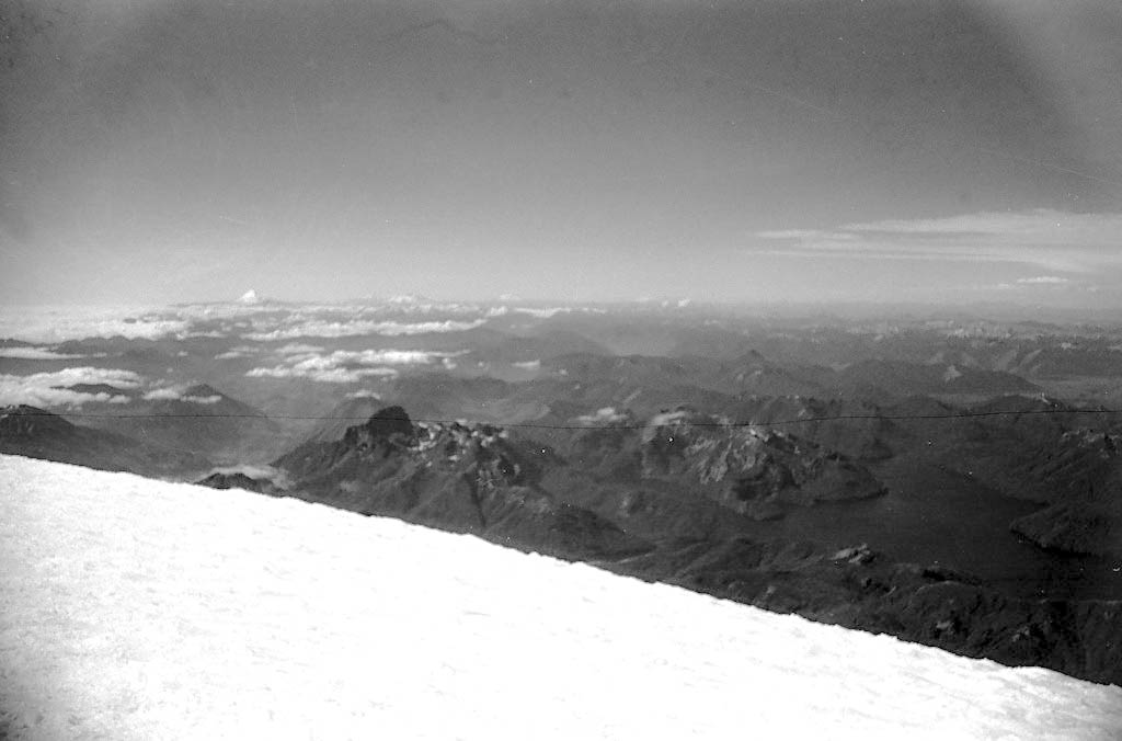 Muy temprano en la mañana nos pusimos los grampones y empezamos a remontar el glaciar norte hasta la cúpula de hielo que baja de la cumbre tratando de aprender a utilizar el equipo que habíamos conseguido Alrededor de las 3 de la tarde llegamos a la cumbre.