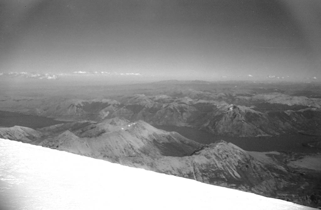 Nos paramos sobre el cúmulo de nieve y quedamos todos en silencio, mientras Jorge registraba con su cámara los volcanes chilenos, el Osorno, el Villarrica y el Puntiagudo, con una blanca nube sobre la cumbre que confirmaba los rumores de una pronta erupción. Casi alcanzábamos a ver el Océano Pacífico. Del lado argentino veíamos los lagos Tromen, Huechulafquen y Paimún desde donde veníamos. Cada uno celebró a su manera, cada uno sabía cuánto le había costado llegar, cuánto empeño habíamos puesto y cuántos obstáculos habíamos vencido.