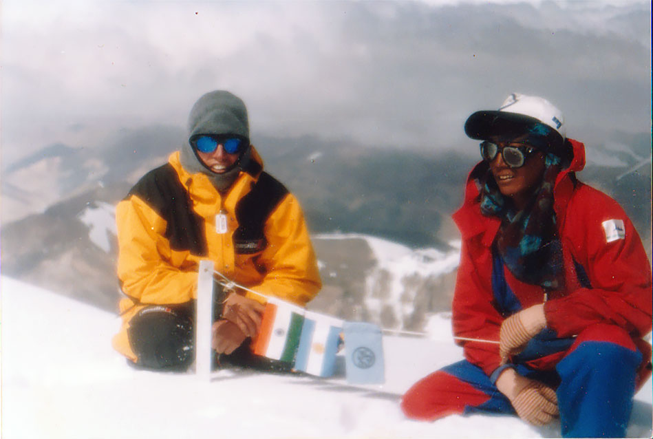 Llegaron a la cumbre cinco integrantes de la cordada india, entre ellos fueron, Kunga Bhutia, siendo la única mujer de la expedición en la cumbre; Nima Norbut Sherpa; Amar Prakash, para mí, era el más fuerte de la cordada india, quien abrió la huella hasta la cima, durante toda la subida, en nieve blanda; Ang Tshering Sherpa, más otro indio, que no recuerdo su nombre y que no tengo anotado su nombre, y Martín Molina y yo. En total fueron cinco indios y nosotros dos. El resto del grupo argentino, venía un día atrás, con otro grupo grande de la India.