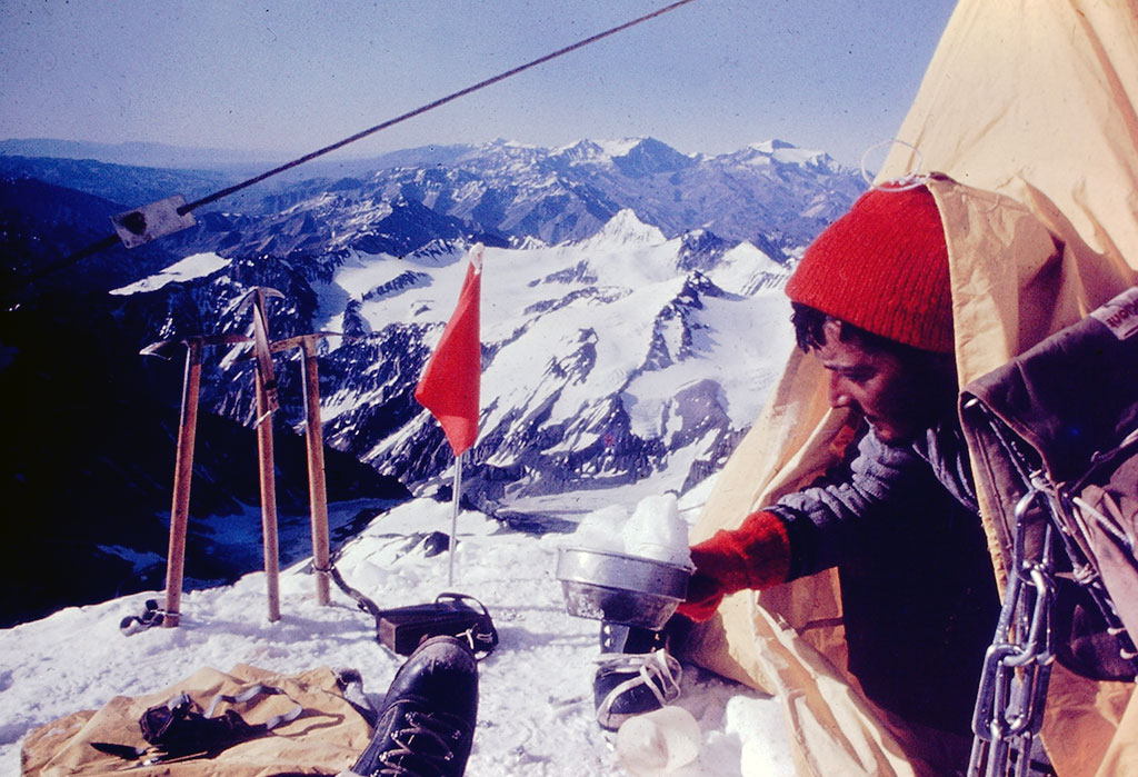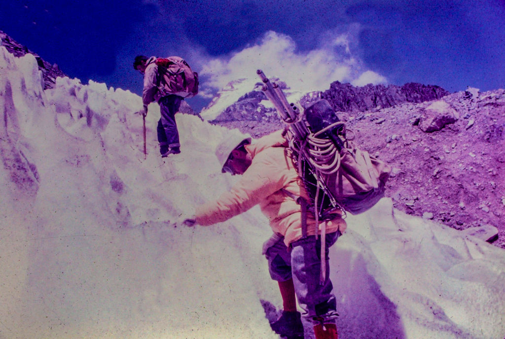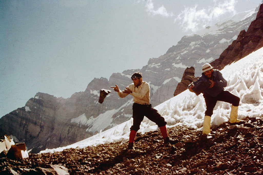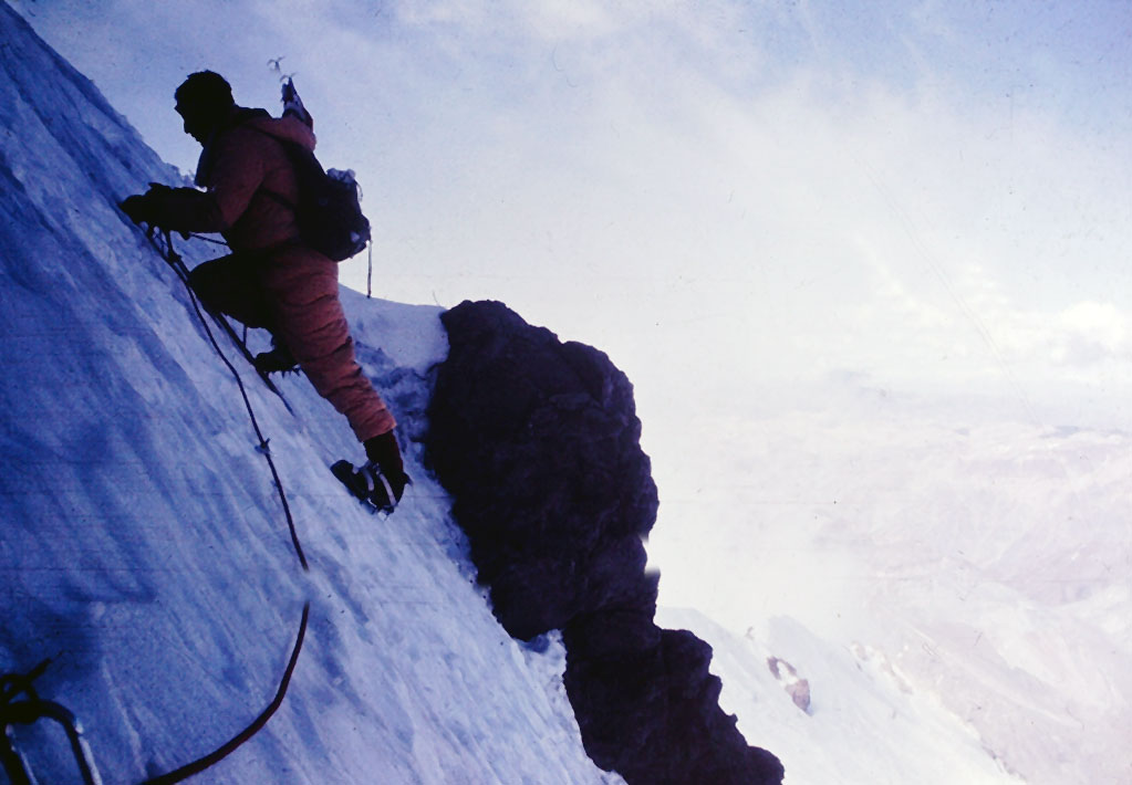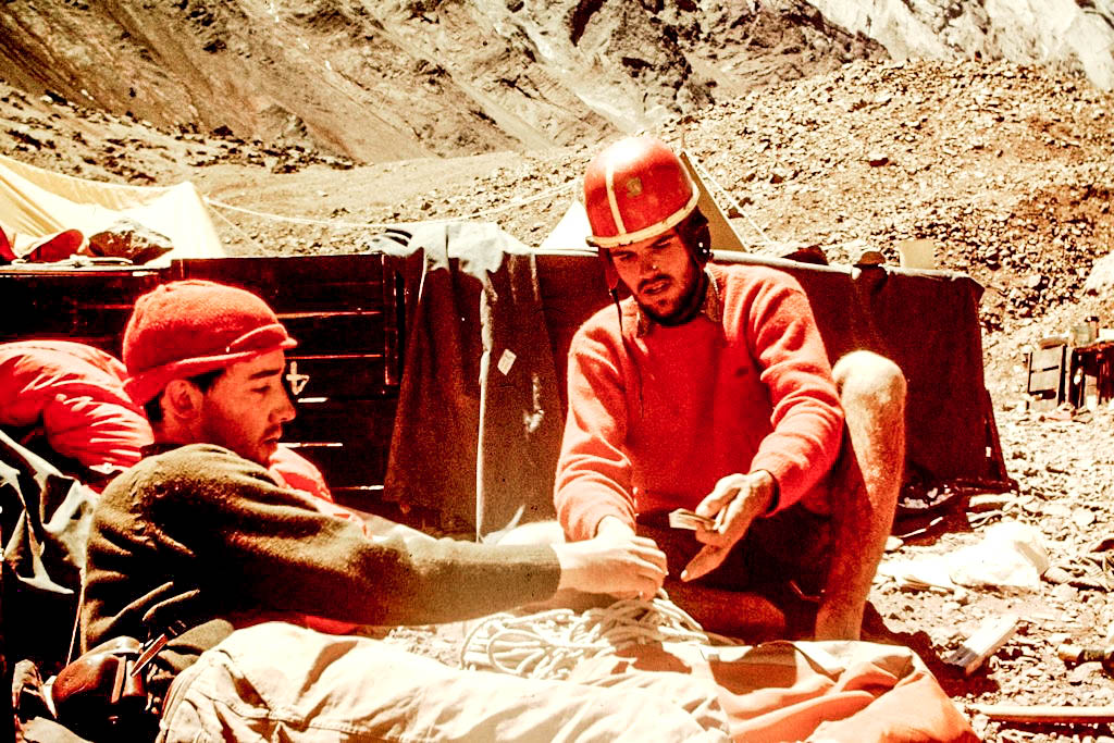 Corría el año 1966 y Mario realizaba el segundo intento de subir la pared sur por el centro de la pared, pero una avalancha nos dispersó las cargas que habíamos subido a los 5000 mts.