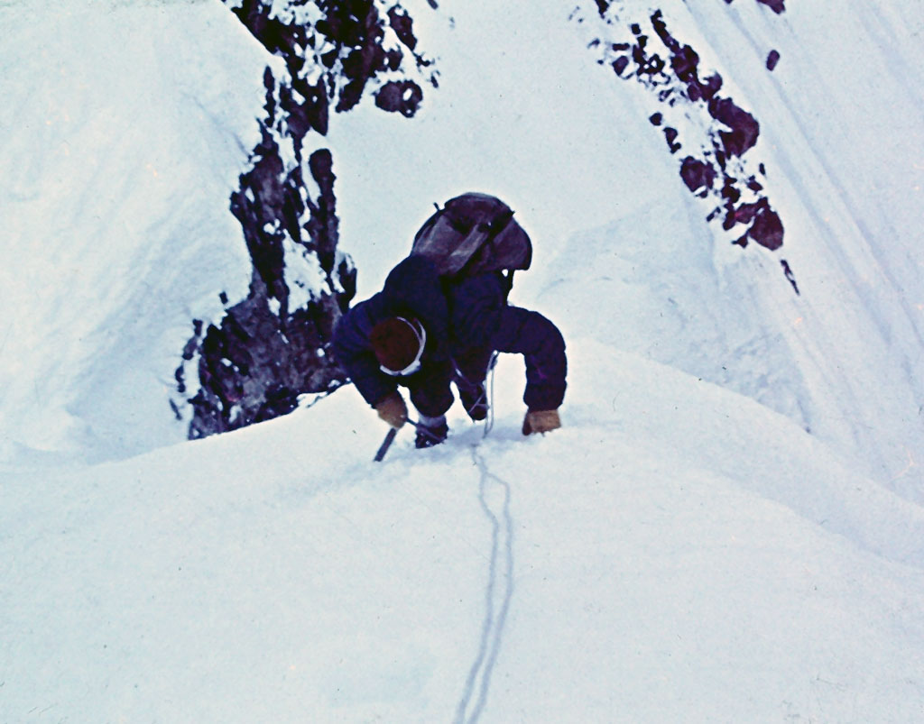 Variante Messner (inferior): Reinhold Messner. Enero 1974.