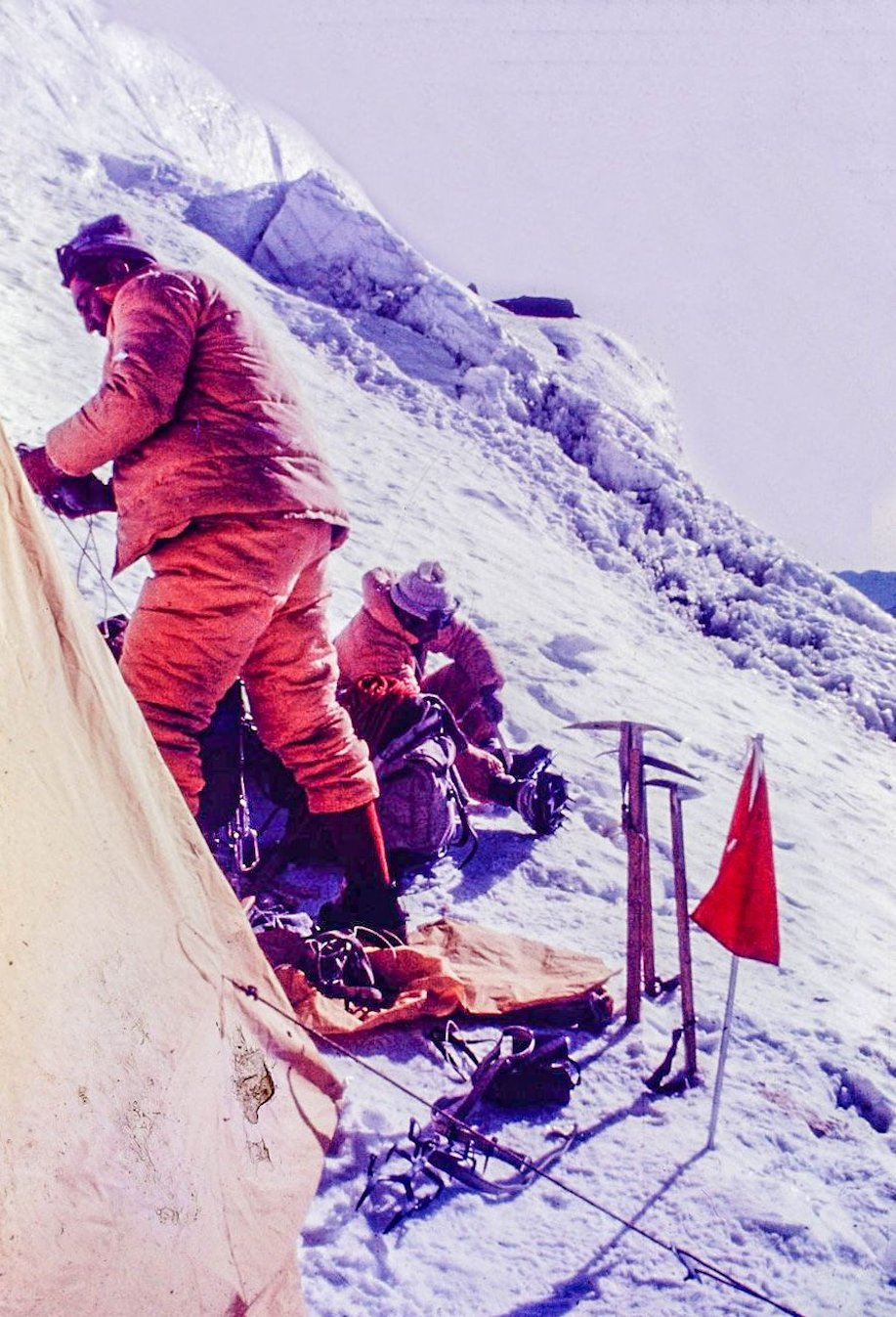 “Corría el año 1966 y en este intento por el centro de la pared una avalancha tiró todas nuestras provisiones y materiales por lo que abandonamos esta alternativa y nos dirigimos a la ruta Francesa donde una expedición japonesa intentaba el gran espolón.