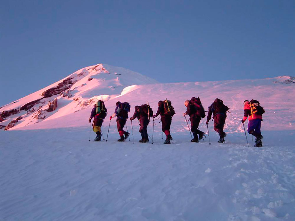 La experiencia de ascender el volcán Lanín es única e irrepetible y deja huellas para toda la vida, se puede subir solo o con amigos.
