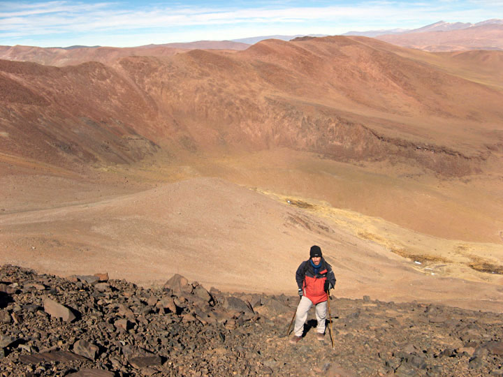 Seguiríamos la estrategia salteña: “en el día y sin aclimatar”. Reconozco que siempre fue escéptico a su efectividad, pero luego de probarla en algunos cincomiles y lograr las respectivas cumbres, empecé a tomarla en serio, aunque nunca voy a mostrar las fotos de cómo uno llega de nuevo a la base.