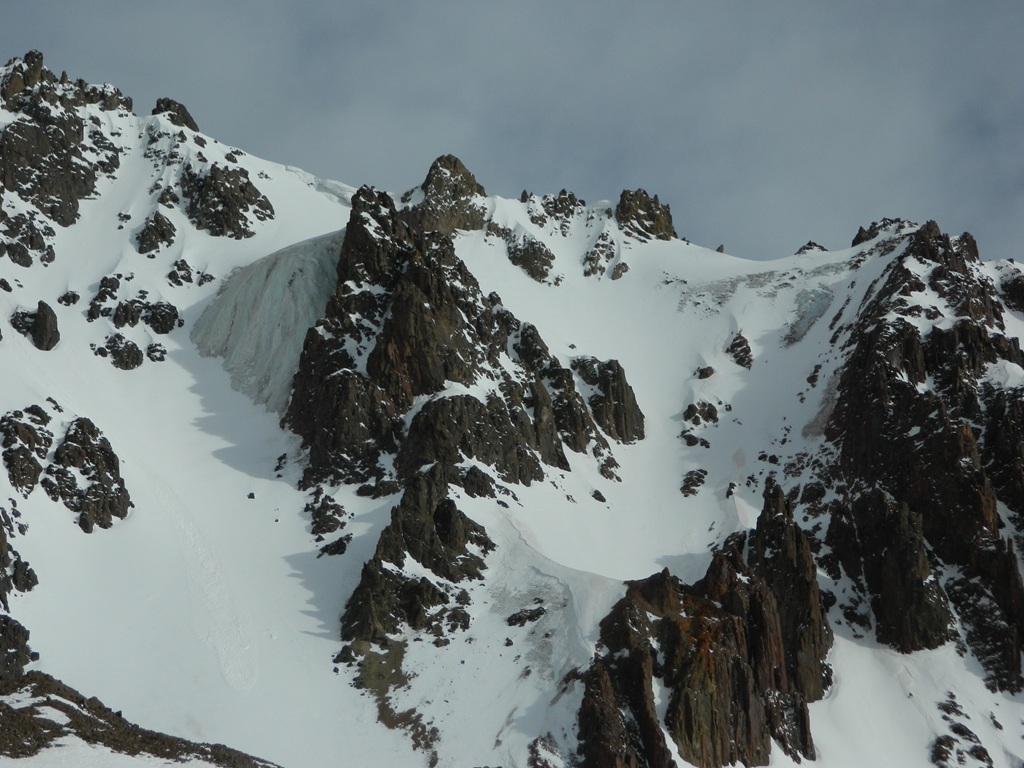 Cara este del Cerro Hosco, se observa claramente el corredor de nieve que conecta con el sector somital.