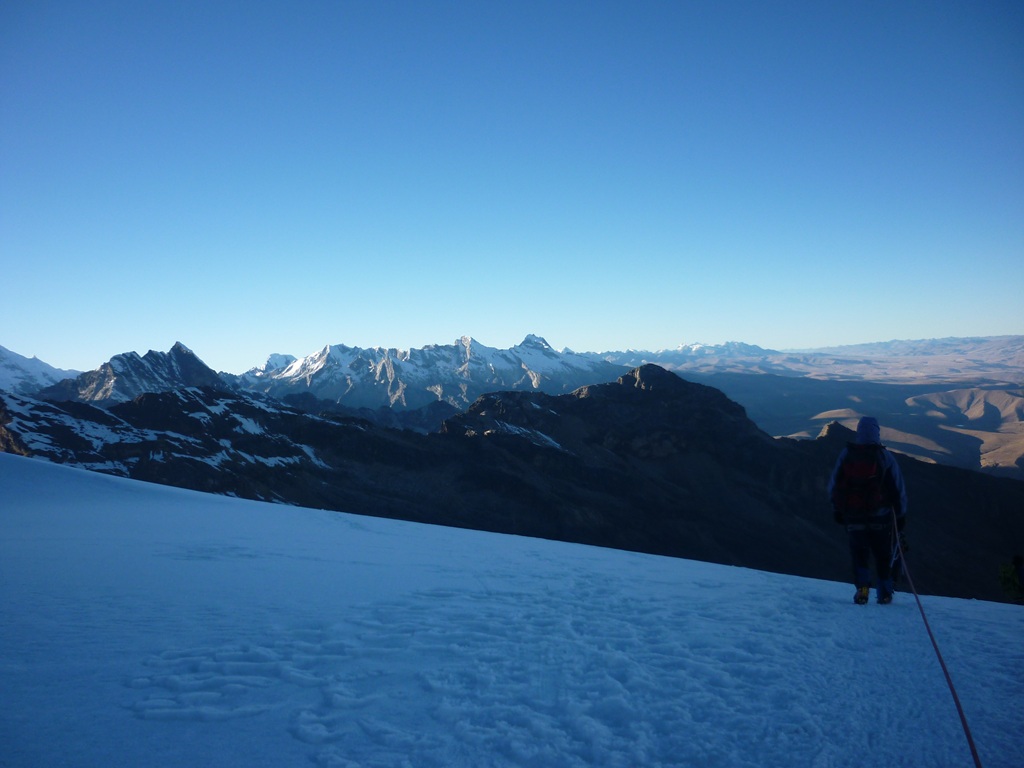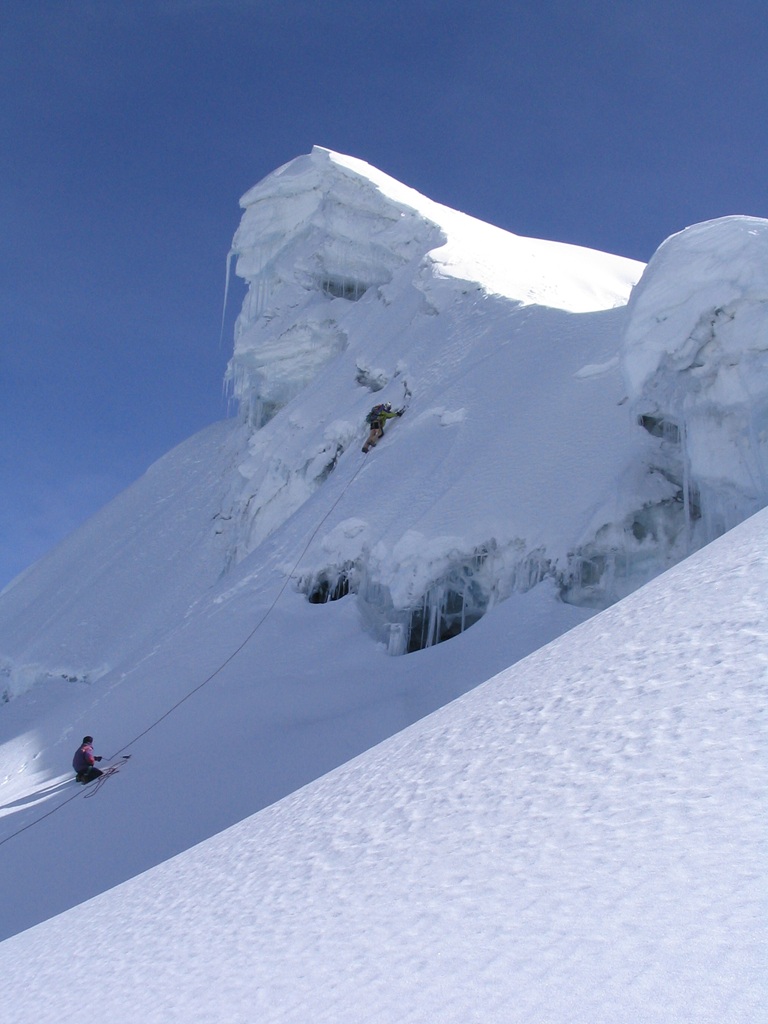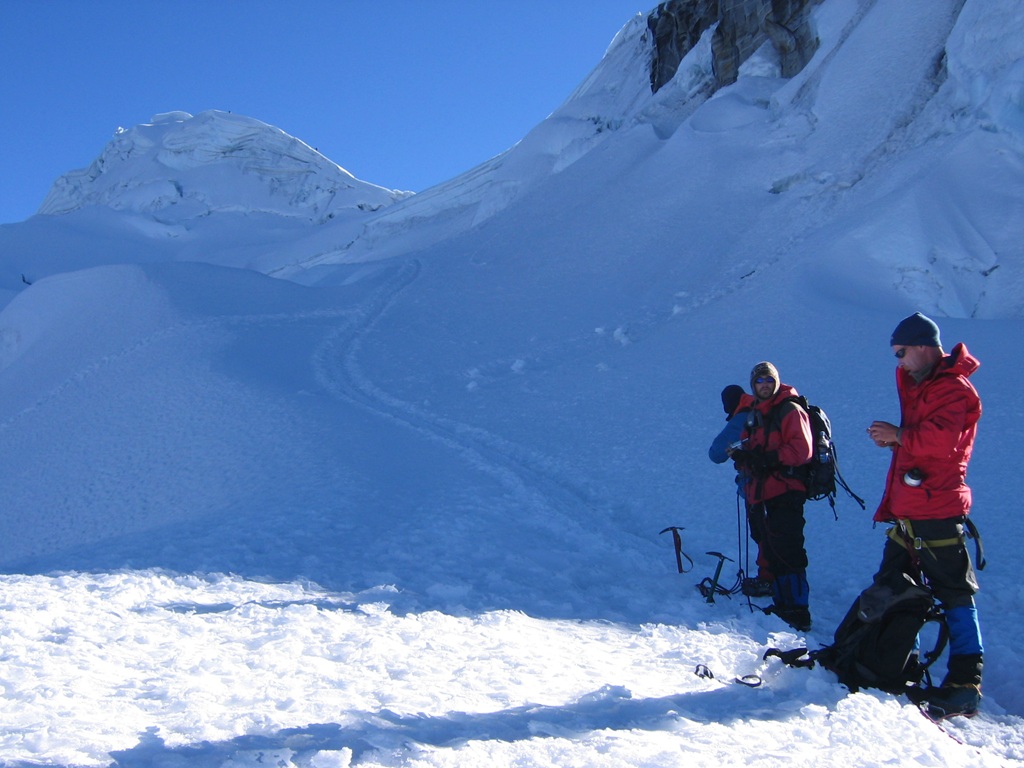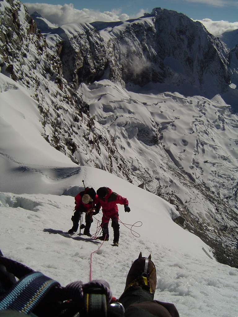La bajada resultó fascinante y permitió tomar muchísimas fotografías que la oscuridad me había negado, rápidamente desarmamos campamento y bajamos, en la bajada un estruendo precedió a una avalancha de nieve y hielo en la montaña de enfrente (Ocshapalca) lo que confirmaba la importancia de haber subido durante la noche y ponía de manifiesto el calentamiento global y sus consecuencias en la cordillera blanca peruana.