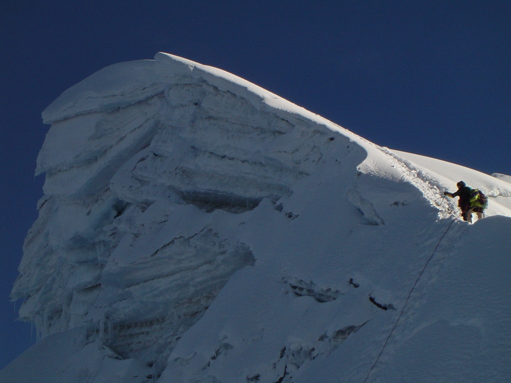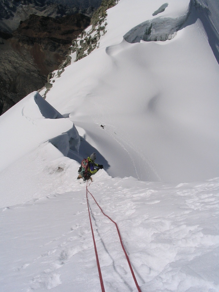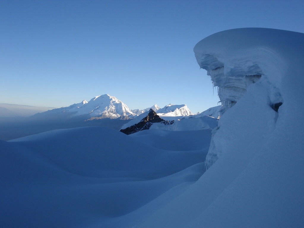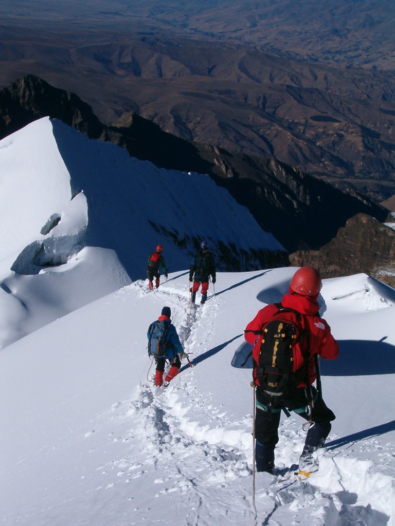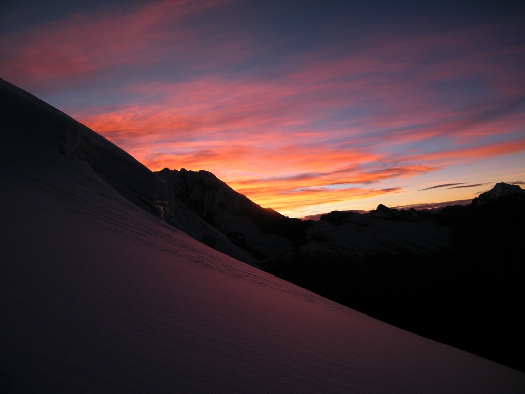 La bajada resultó fascinante y permitió tomar muchísimas fotografías que la oscuridad me había negado, rápidamente desarmamos campamento y bajamos, en la bajada un estruendo precedió a una avalancha de nieve y hielo en la montaña de enfrente (Ocshapalca) lo que confirmaba la importancia de haber subido durante la noche y ponía de manifiesto el calentamiento global y sus consecuencias en la cordillera blanca peruana.