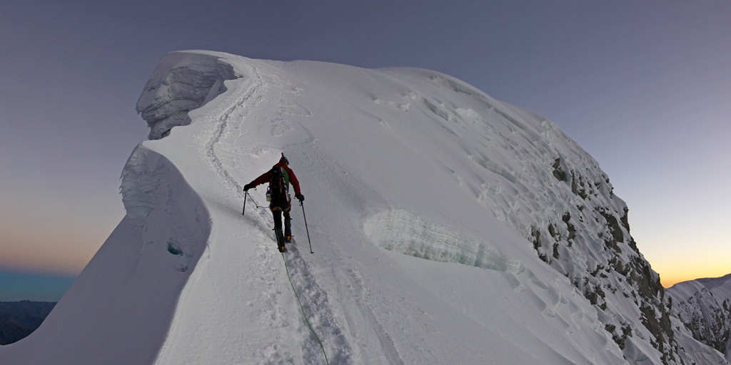Todo el camino a la cima lo hicimos de noche en una de las paradas mi botella de hidratación rodo por el glaciar por lo que no me permitió hidratarme correctamente durante el ascenso lo que hizo que me cansara mucho más que lo habitual, sumado al frío extremo de ese día que generó un esfuerzo físico y mental muchísimo más de lo que usualmente exige el Vallugnarraju.