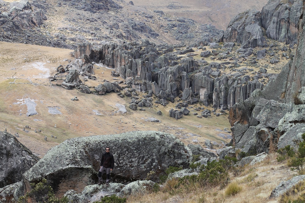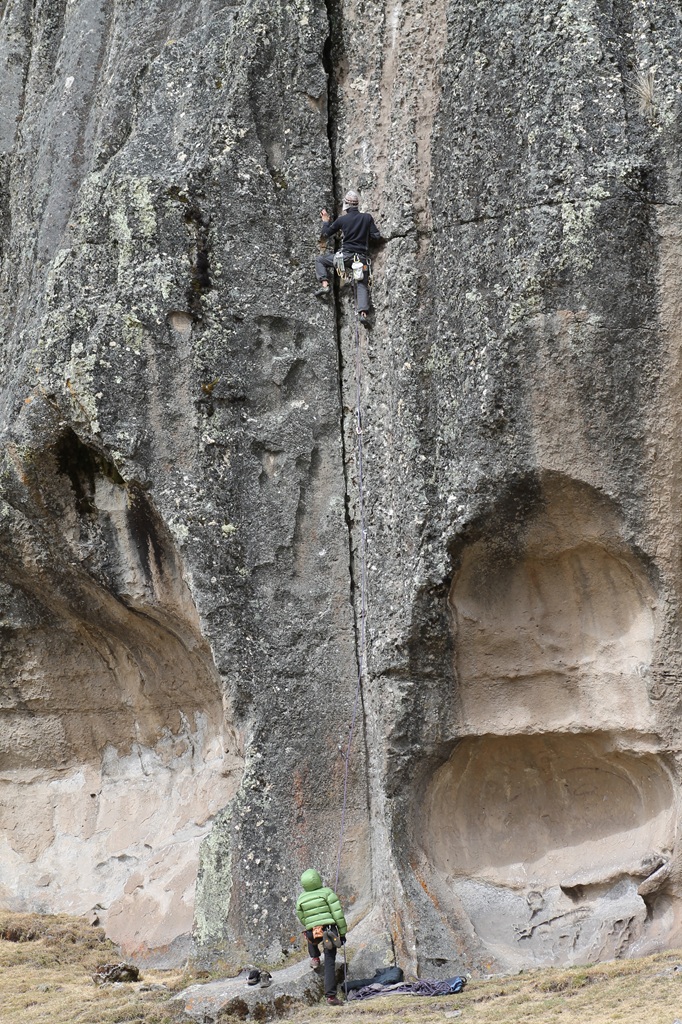 Ya en Huaraz nuevamente quería hacer un descanso activo antes de subir algún nevado y qué mejor que hacer un poco de trekking y escalada en un bosque de rocas como Hatun Machay. Hatun (del quechua ancashino hatun, grande, y de machay, cueva, es decir: cueva grande) es un bosque de piedras de hasta 80 metros de altura con restos arqueológicos y está ubicado en la vertiente occidental de la Cordillera Negra, en la Región Puna o Jalca, a 4.200 metros Tiene una extensión de 200 hectáreas. Aquí convergen principalmente escaladores de roca de todo el mundo dada las condiciones de la roca y la cantidad de vías equipadas, sumado a las pinturas rupestres y petroglifos que hacen de este lugar un sitio único en el mundo.