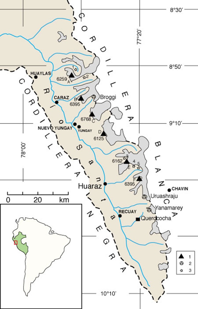 Ames, A., y B. Francou. 1995. Cordillera Blanca - Glaciares en la historia. Bull. Inst. fr. études andines.