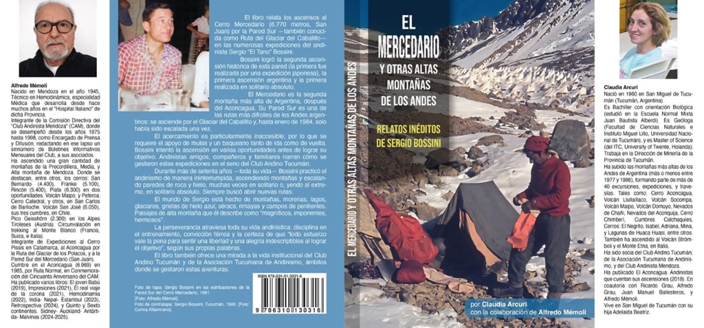 El libro en cuestión se titula : “El Mercedario y otras altas montañas de los andes", y contiene relatos inéditos de Sergio Bossini.