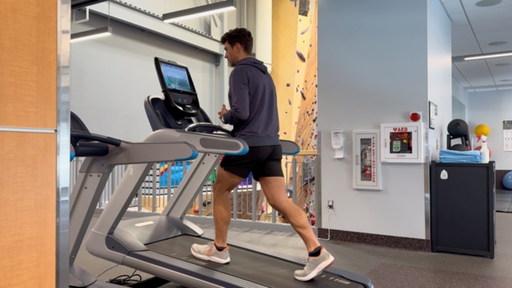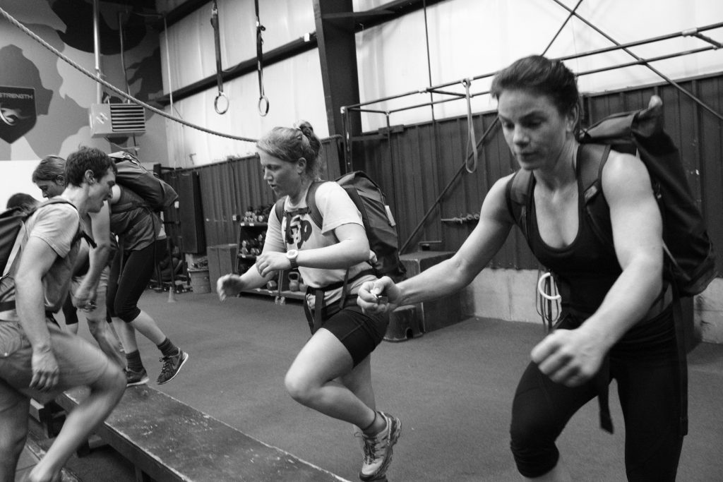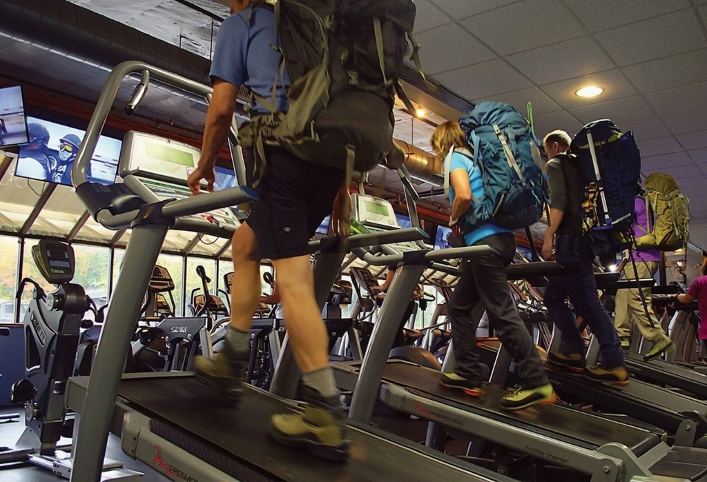 Simulando la subida con mochila en montaña en un gimnasio