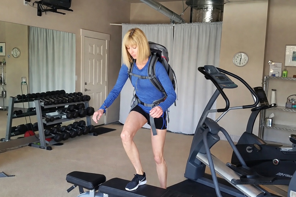 Las subidas al banco con la carga en mochila. Se dosifican gradualmente durante la pretemporada de montaña hasta cargar el peso concreto que llevaremos en nuestras espaldas en una expedición o trekking